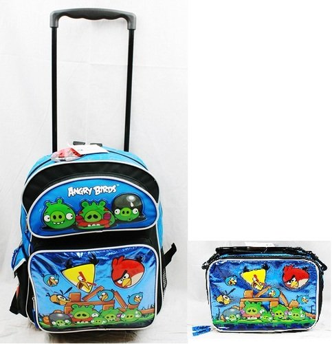 We have the gift idea with the best wish for you: Angry Birds Large 16" Rolling Backpack with Lunch Bag - Metallic Blue with Blue Top in Linton, Indiana. Most Helpful Customer Reviews: 9 out of 10 based on 45 ratings, 45 user reviews.