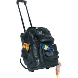 Extra large, adjustable shoulder straps for a comfortable fit when used as a backpack. Then, if it is too heavy, simply unzip the top and pull the telescopic handle. There is a valve that can relate to the wheels as well as the & rsquo. s not in use as a rolling cart. There are pockets for phones, sunglasses, binoculars, papers, keys and wallet. There are two side zipper saddlebags, and three pouches for tons of storage. Backpack measures 14-1/2.x 19.x 9 ...