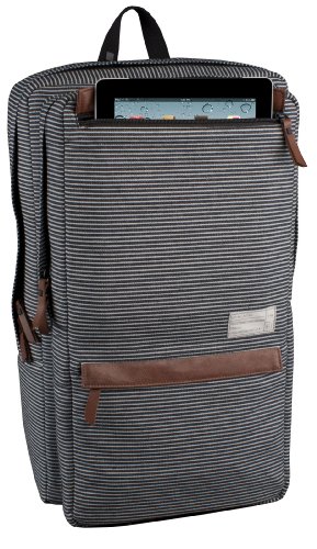 TEST Hex The Fleet Sonic Backpack. Striped canvas laptop backpack adjustable padded shoulder straps, top zip front pocket for iPad and bottom zippers, zipper main compartment has interior organization has large main compartment with zip fleece lined padded laptop pocket Velcro (up to 17 ") Measures: 11.5." W x 19 "H x 6.25" D By HEX ..
